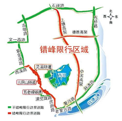 为贯彻落实国务院节能减排要求,保障第八届全国残疾人运动会顺利进行,进一步缓解我市交通拥堵,为公共交通发展、城市轨道交通建设、城市快速路网和基础建设赢得时间和空间,根据《中华人民共和国道路交通安全法》、《杭州市道路交通安全管理条例》、《杭州市机动车排气污染防治条例》等有关法律法规的规定,市政府决定自2011年10月8日上午7:00起,实施机动车工作日(星期一至星期五)高峰时段区域“错峰限行”交通管理措施。现将有关事项通告如下: 一、“错峰限行”时段 工作日的7:00-8:30;17:00-18:30早晚高峰时段。 二、“错峰限行”区域 留祥路-石祥路-石桥路-秋涛路-复兴路-老复兴路-虎跑路-满觉陇路-五老峰隧道-吉庆山隧道-梅灵北路-九里松隧道-灵溪南路-灵溪隧道-西溪路-紫金港路-文一西路-古墩路构成的围合区域内所有道路以及高架桥和隧道。 除虎跑路、满觉陇路、五老峰隧道、吉庆山隧道、梅灵北路、九里松隧道、灵溪南路、灵溪隧道、西溪路外,其他围合道路均不含。 三、“错峰限行”机动车辆 (一)机动车在工作日按机动车号牌(含临时号牌)最后一位阿拉伯数字对应,在“错峰限行”区域内,按“错峰限行”时段禁止通行。对应规则为: 星期一:机动车号牌(含临时号牌)最后一位阿拉伯数字1和9禁止通行; 星期二:机动车号牌(含临时号牌)最后一位阿拉伯数字2和8禁止通行; 星期三:机动车号牌(含临时号牌)最后一位阿拉伯数字3和7禁止通行; 星期四:机动车号牌(含临时号牌)最后一位阿拉伯数字4和6禁止通行; 星期五:机动车号牌(含临时号牌)最后一位阿拉伯数字5和0禁止通行。 (二)因法定节假日而致双休日变更为工作日的,按对应工作日尾号实施“错峰限行”。 四、允许通行的机动车辆 (一)大型客车、公共汽(电)车、省际长途客运车辆以及客运出租汽车、城市快运车辆; (二)军(武警)车、警车、消防车、救护车和工程抢险车以及其他法律法规规定不受行驶路线、行驶方向和车辆分道行驶限制的车辆。 市政府将积极贯彻落实公共交通优先发展战略,通过加快轨道交通建设、推进城市道路建设、优化地面公交运营环境、加强公共停车场(库)建设、开展区域校车试点、优化出租汽车运营模式、完善自行车与行人交通系统等综合措施,进一步缓解城市交通拥堵问题。 特此通告。