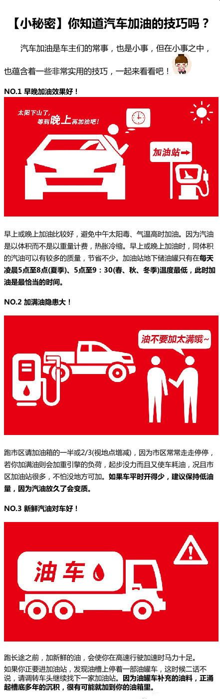 ①每天凌晨5:00-8:00(夏季),5:00-9:30(春、秋、冬季)温度最低,此时加油是最恰当的时机;
