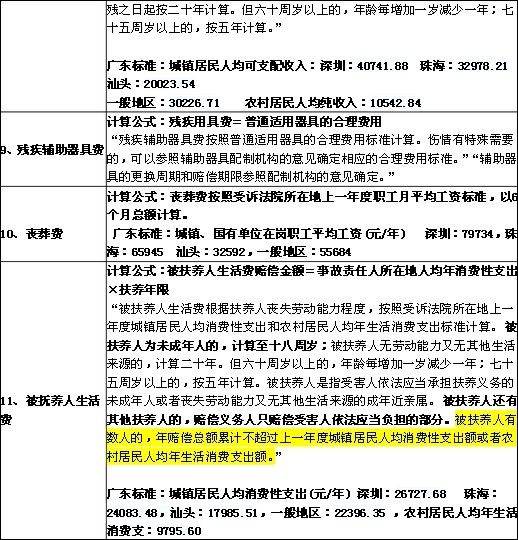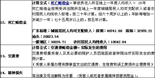 2014广东省交通事故赔偿标准