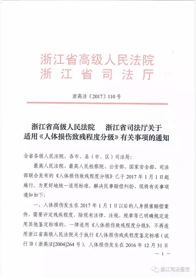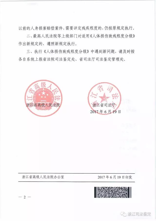 浙江省高院、省司法厅联手出台《关于适用<人体损伤致残程度分级>有关事项的通知》