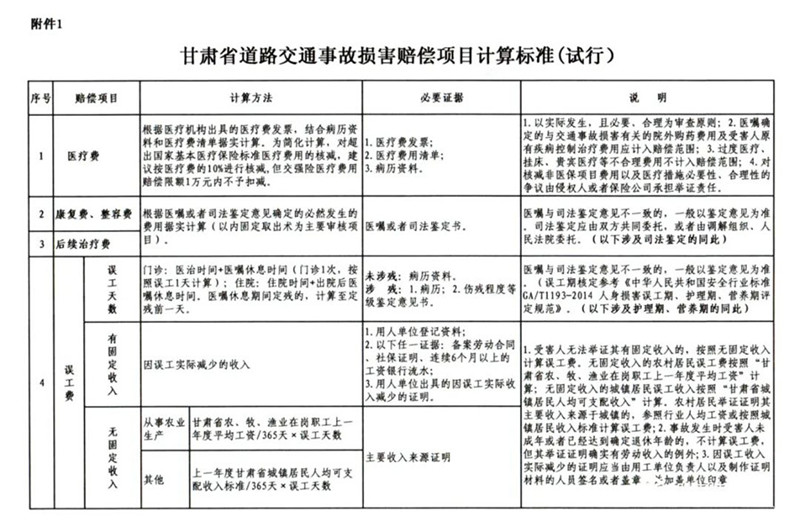 甘肃高院等四部门关于印发《甘肃省道路交通事故损害赔偿项目计算标准(试行)》