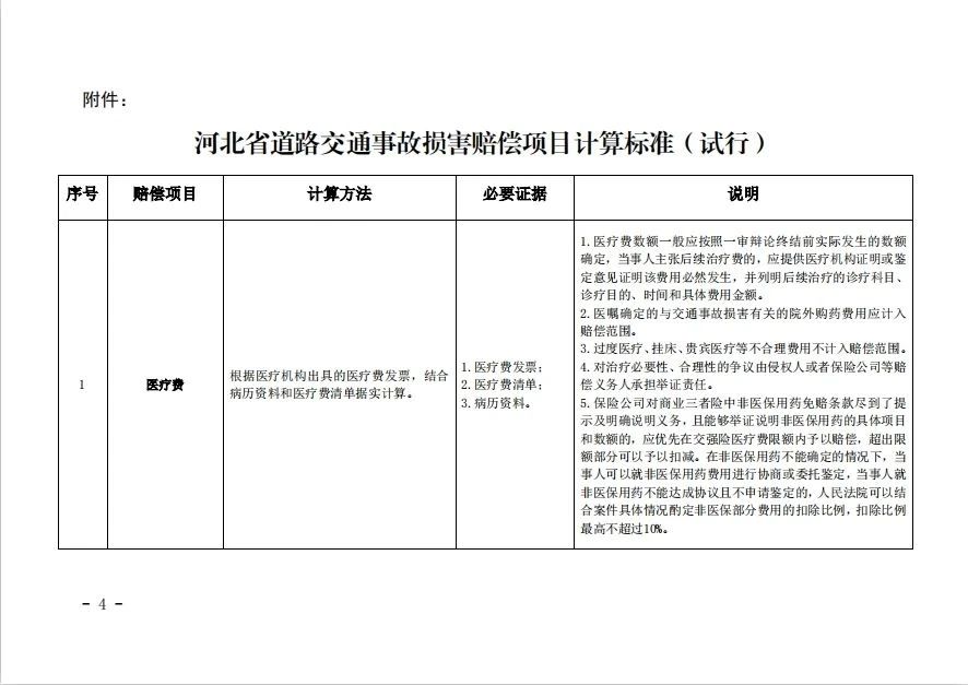 附件:河北省道路交通事故损害赔偿项目计算标准(试行)