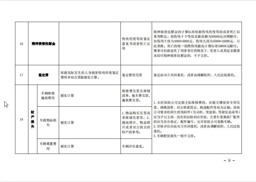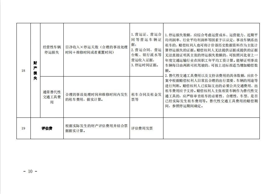 关于印发《河北省道路交通事故损害赔偿项目